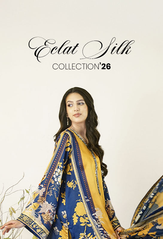 Lilac Mist is an organza cape with hand-embellished stone details at the neckline and sleeves, layered over a crushed silk Sharara. The design combines modern elegance with traditional artistry, making it suitable for festive occasions.