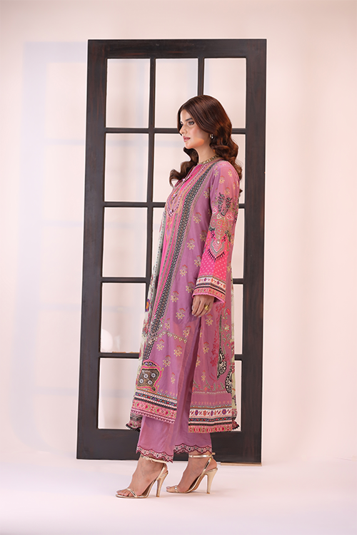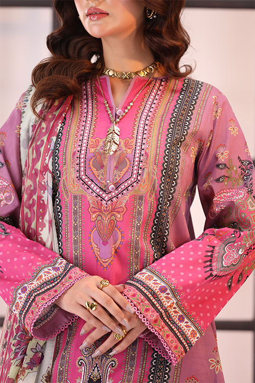 • Digital Printed Lawn Shirt With Embroidery Detail On Daaman And Neckiline