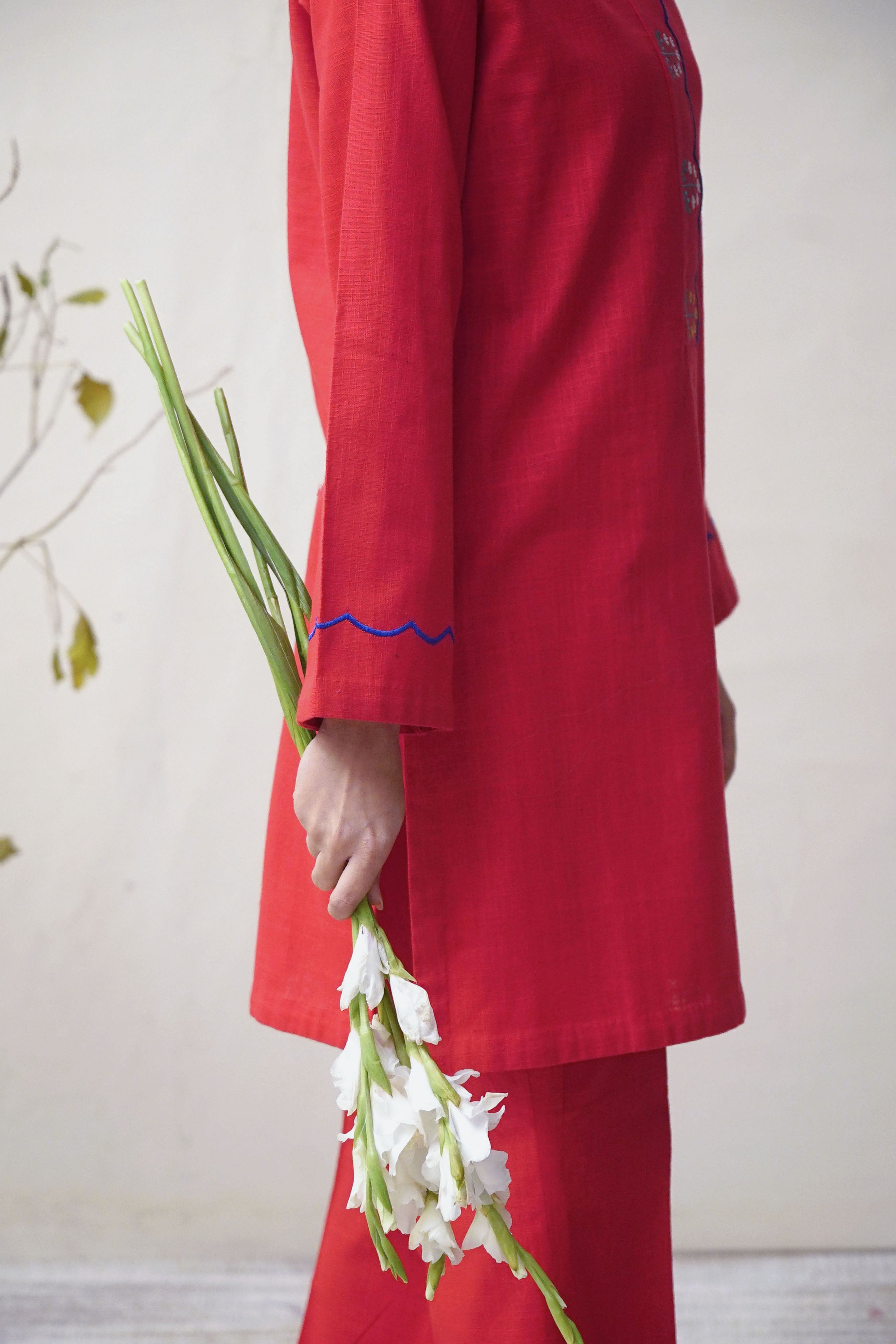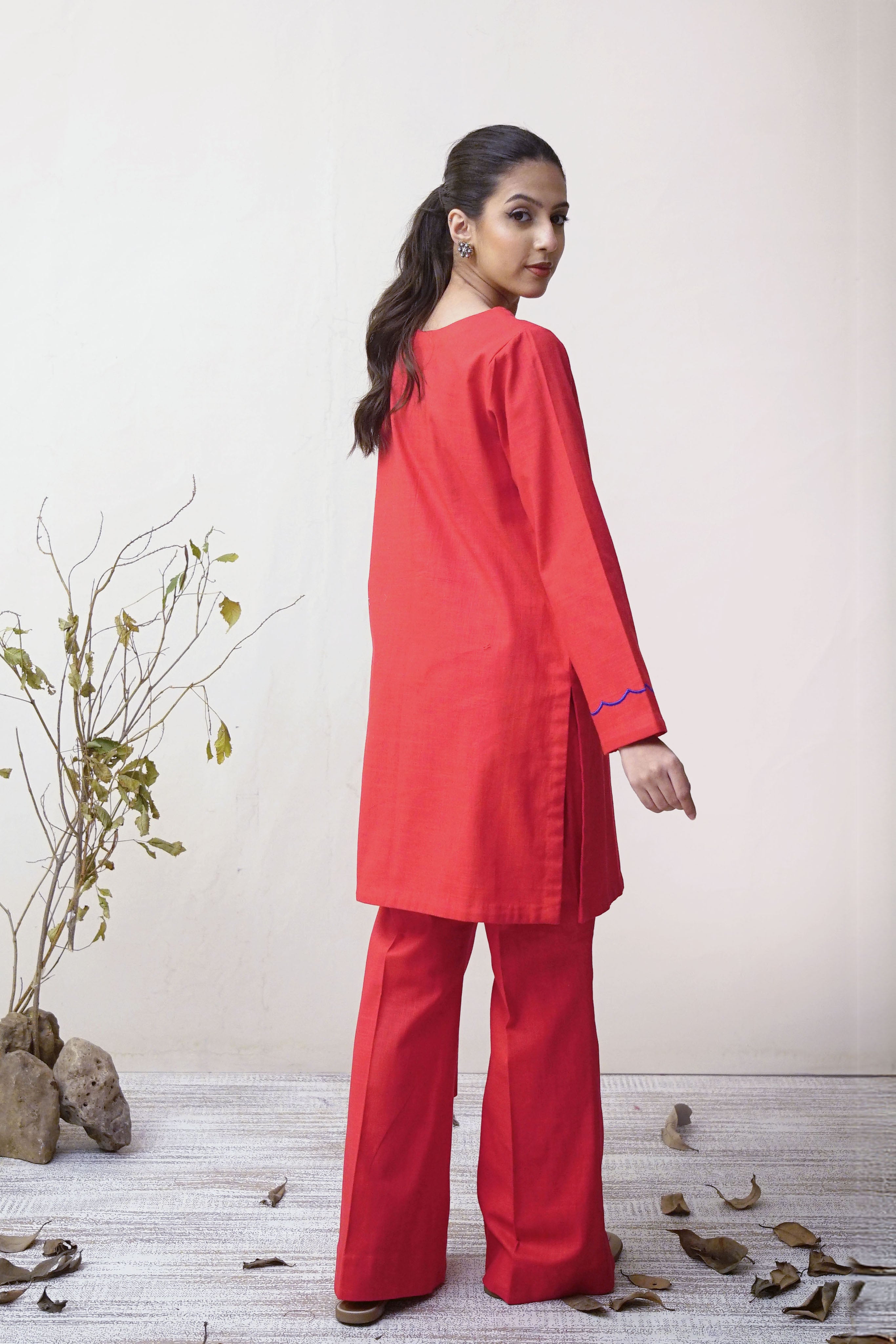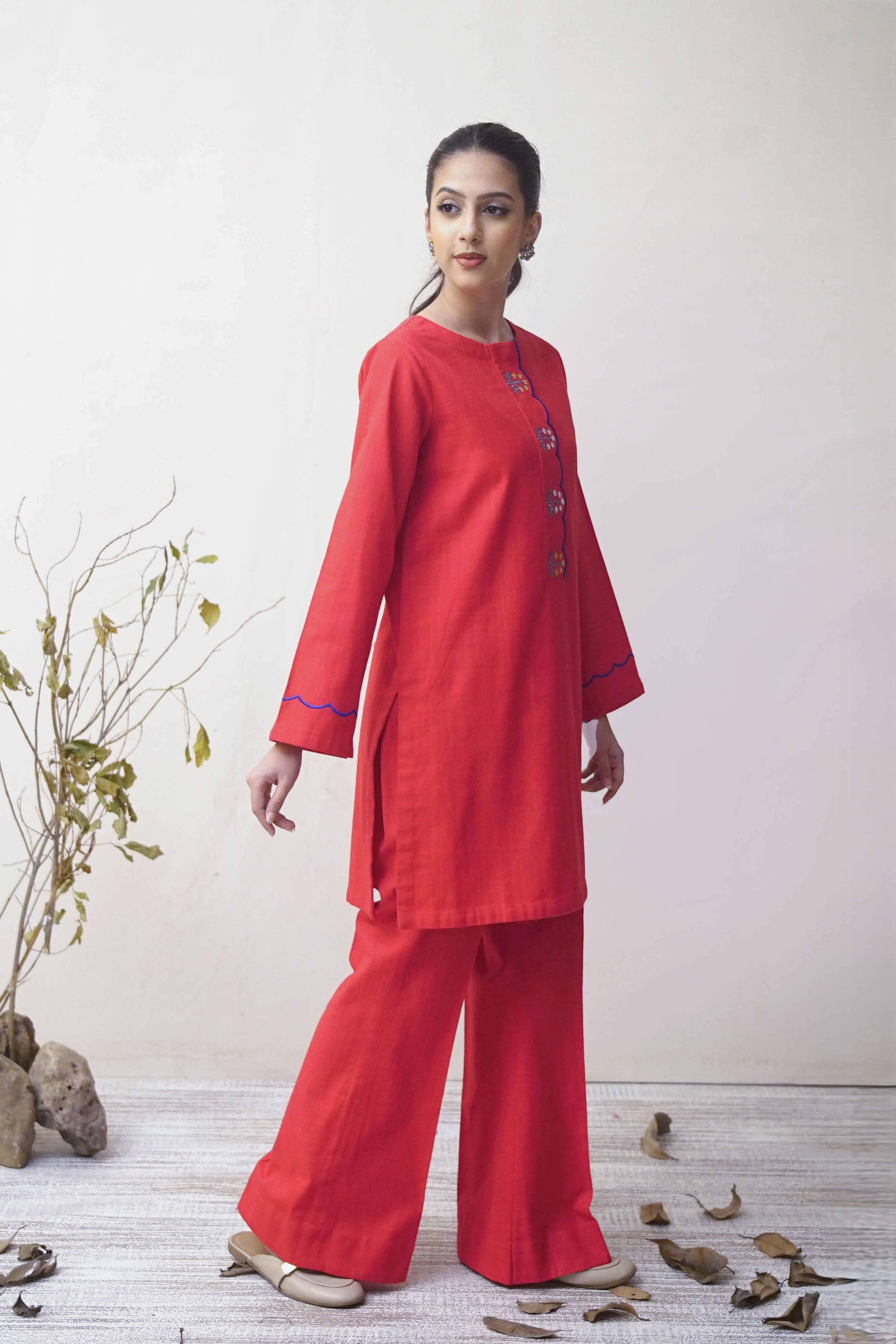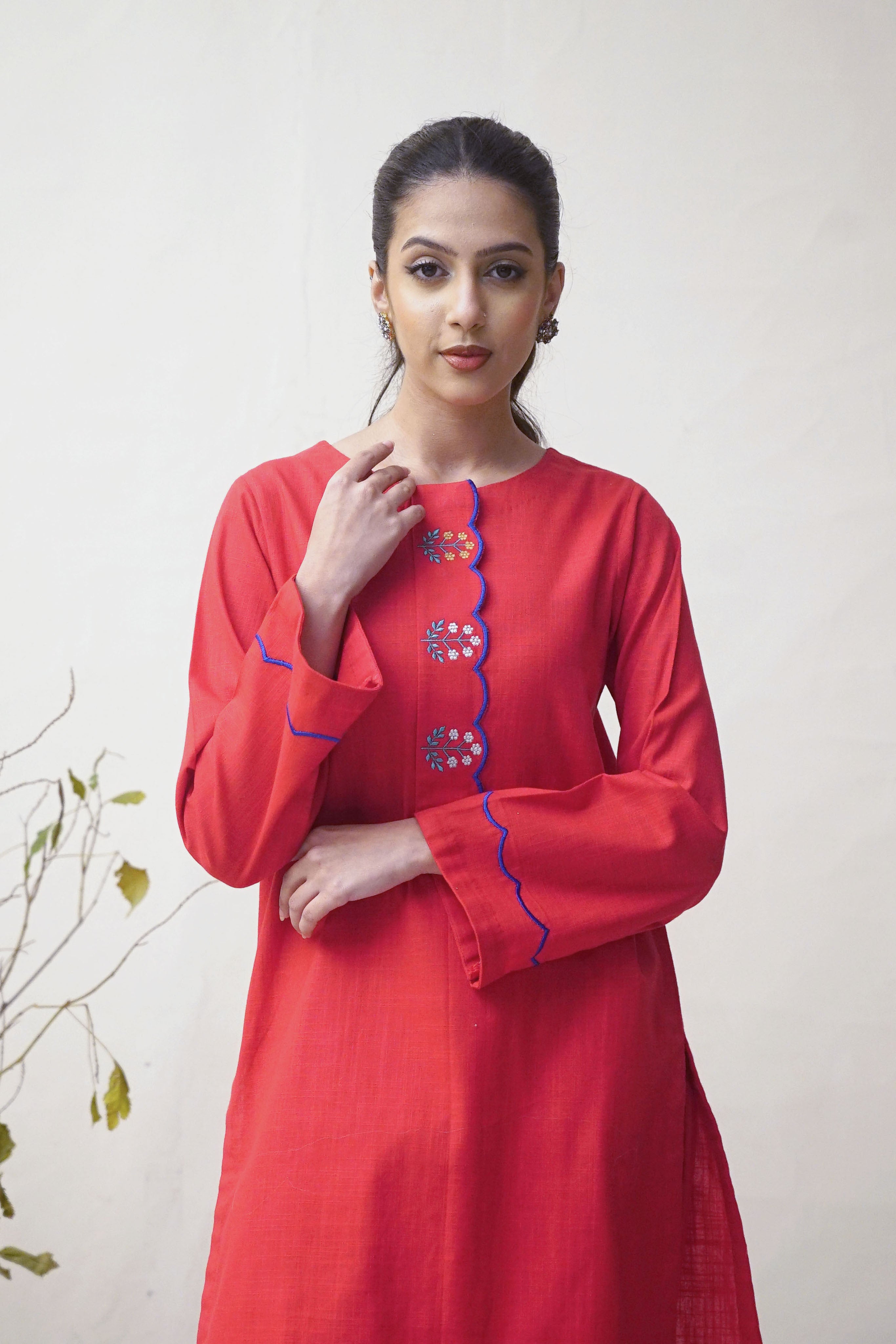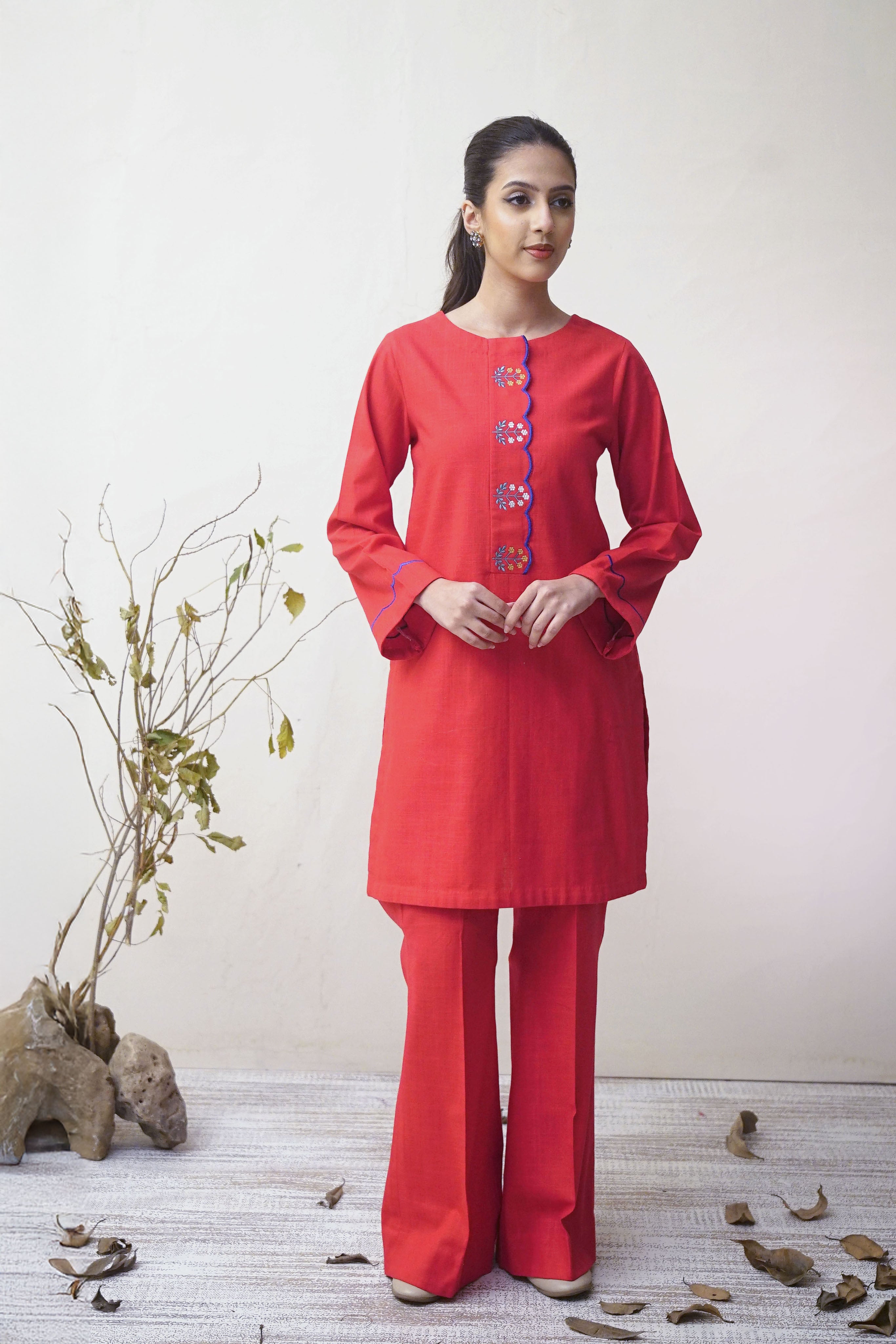 Shirt: Straight cut with Embroidered Front and sleeve accents