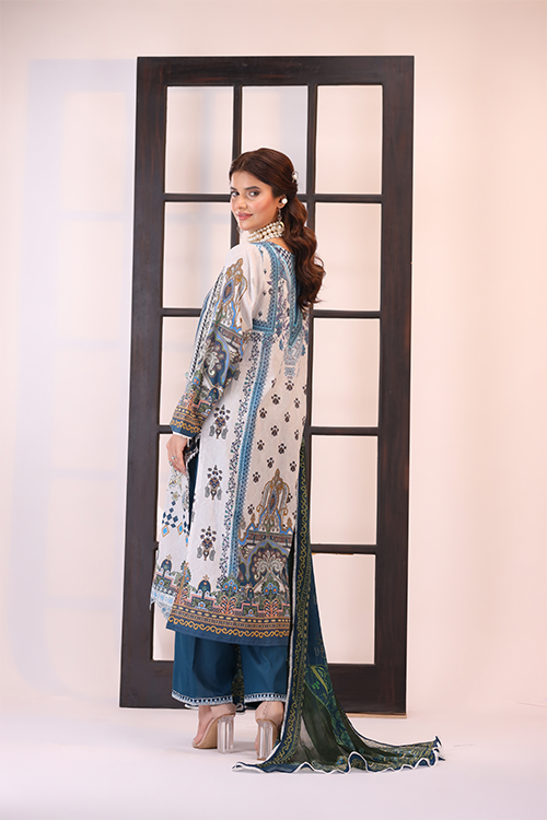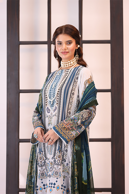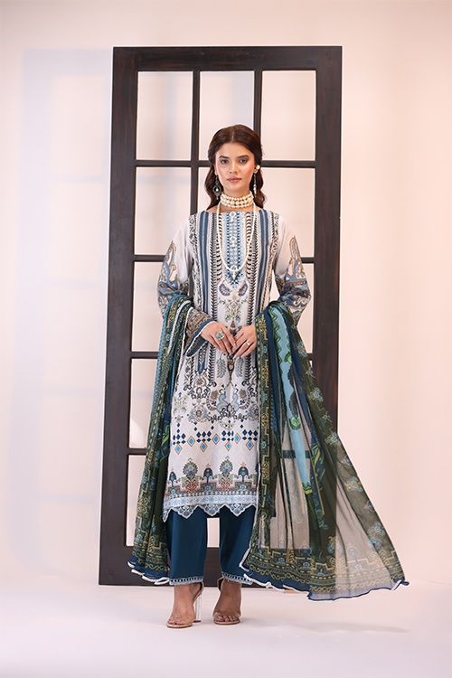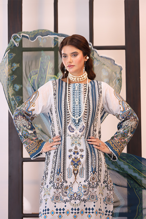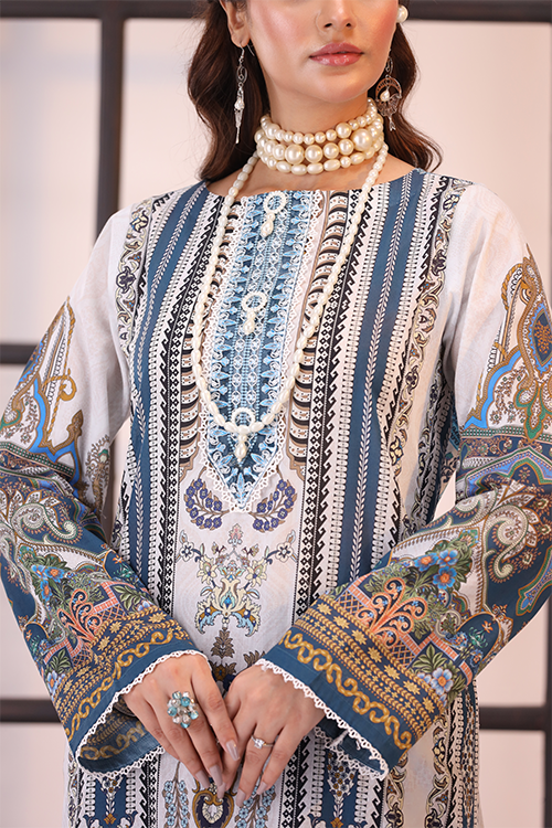 • Digital Printed Lawn Shirt With Embroidery Detail On Neckiline And Daaman