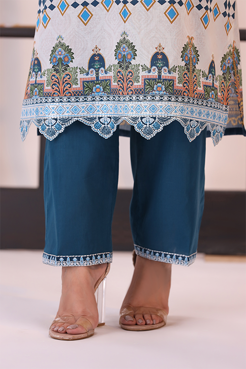 • Dyed Cambric Embroidered Trouser